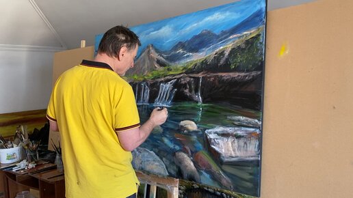 В моем исполнении бассейны феи, водопады на острове Скай в Шотландия, маслом на холсте 100 на 150см. 3-этап. Зилавди Яшуркаев!