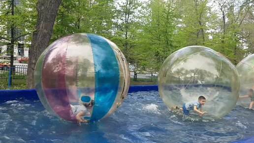 Новосибирск летний. В парке. Катание в прозрачном шаре - отличный аттракцион