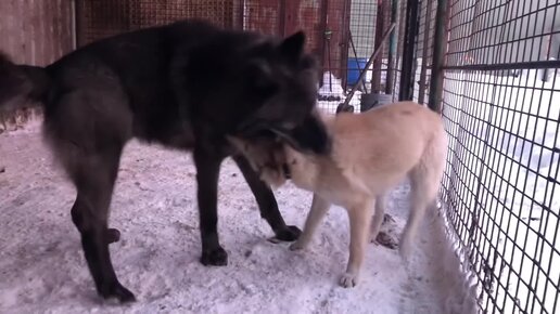 Канадский волк и западно-сибирская лайка 6 месяцев, дружба Волка и собаки, северный волк