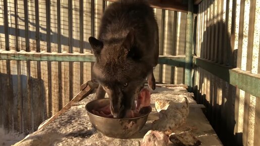 Канадский волк ужинает замороженным мясом на закате дня, самый крупный волк