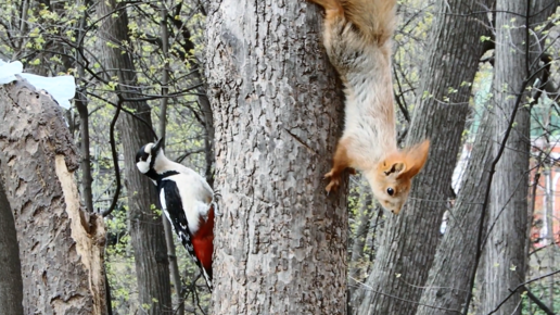 Дятел против голубя, белки и синицы