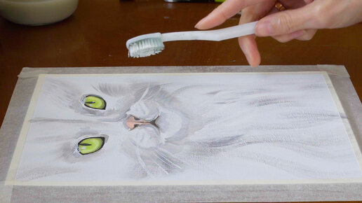 Рисуем мордочку белой кошки акриловыми красками на холсте