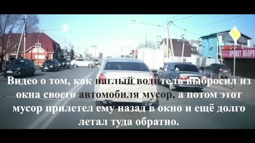 Видео о том, как наглый водитель выбросил из окна своего автомобиля мусор, а бдительный пассажир кинул назад мусор в окно наглому водителю.