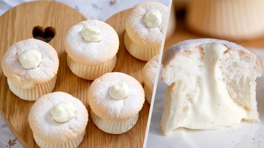 Шифоновые бисквитные кексы с ванильным кремом | Японские кексы Хоккайдо ASMR