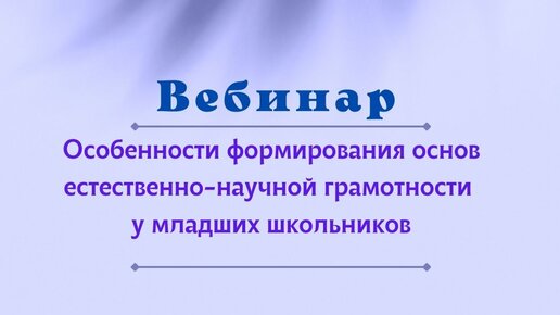Особенности формирования основ естественно-научной грамотности у младших школьников