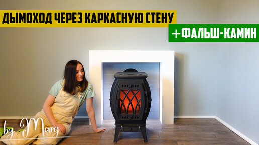 Безопасный выход дымохода через каркасную стену и красивый камин вокруг печки.