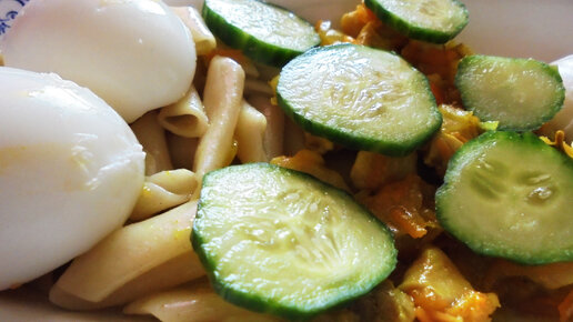 Вкусный ужин который хочется кушать каждый вечер. Жаренная курица с макаронами, яйцом и свежим огурчиком