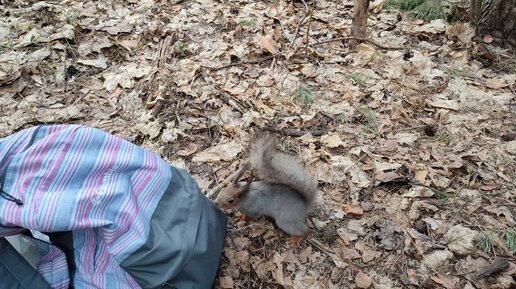 Белка сама достала орех из пакета