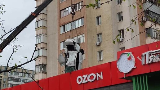 Отброшенную ударной волной машину сняли с крыши магазина в Белгороде
