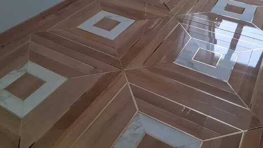 Глянцевый паркет класса ЛЮКС с мрамором, латунными вставками в салонах ХОРОШИЙ ПОЛ