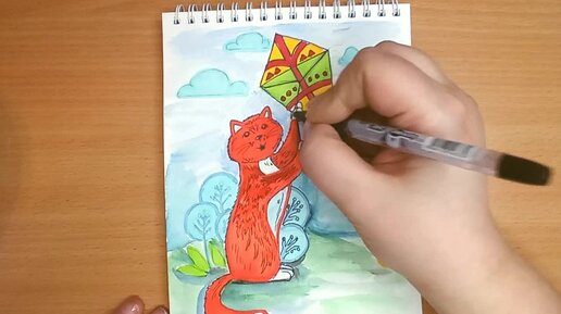 Котик запускает воздушного змея Ч2. Рисунок