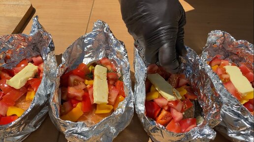 СЁМГА ЗАПЕЧЁННАЯ в ФОЛЬГЕ с ОВОЩАМИ на МАНГАЛЕ