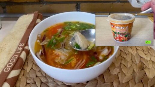 Суп Том Ям.Один из вариантов приготовления тайского супа Том Ям!Наполнитель у супа может быть любой,а главный ингредиент ,это паста -Том Ям!