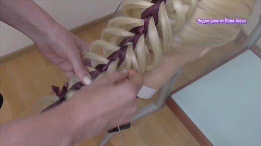 Ажурная коса с лентами. Обратная французская Причёска в школу.