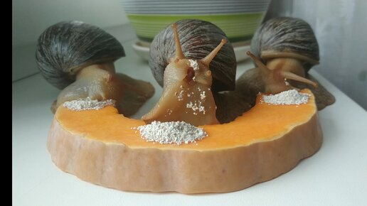Африканские улитки Ахатины едят Русскую тыкву Батенат - Одна улиточка подавилась