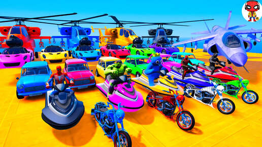 Человек-Паук в ГТА 5! Супер автомобили, мотоциклы, вертолеты, лодки! Эпическая трюковая карта для супергероев