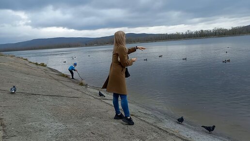 Батон для уток) А у них брачные игры)/Пытаюсь покормить голубя с ладони😉