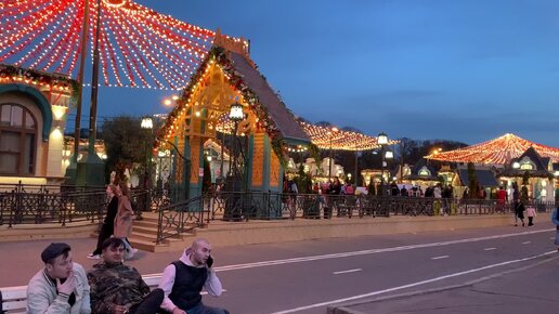 Это та умопомрачительная красота,когда солнце еще не ушло, а фонари зажглись (парк Горького)