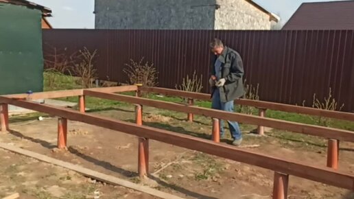 Строительство хозблока. Надёжная обвязка по фундаменту. Установка лаг.