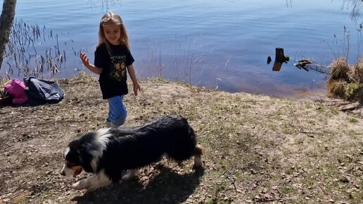 Солнечный Валька и первые купания в апрельской реке🧡. Домой, правда, пойдёт уже комок грязи, а не собака🤣