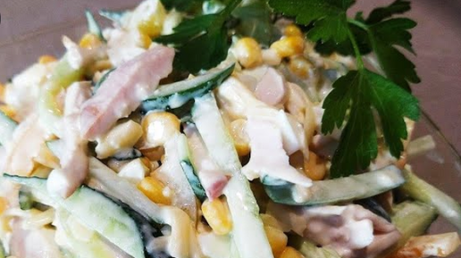 Праздничный салат из огурца и копчёной курицей! Рецепт очень вкусного салата!