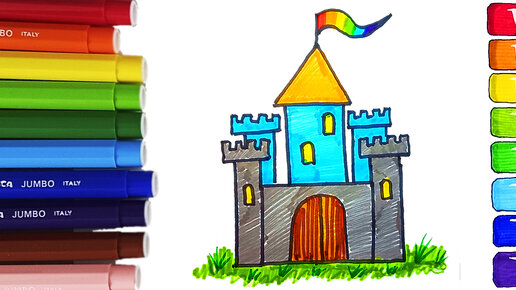 СМОТРИ!!! Круто нарисовал ЗАМОК, Как нарисовать ЗАМОК, Учись Рисовать, Рисуйте ЗАМОК МАРКЕРАМИ.