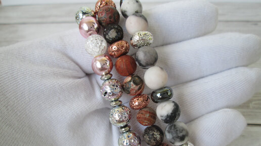 Браслеты на резинке из натуральных камней 8 мм: аргиллит зебровый камень, вулканическая лава, гематит и бусины из глинистой горной породы.
