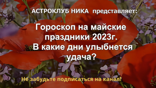 Гороскоп на майские праздники 2023г. В какие дни улыбнется удача?