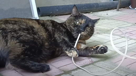 УМОРА!!! Кошка Муся играет с кабелем в догонялки