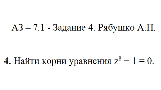 Найти корни уравнения z^8−1=0. АЗ-7.1 Рябушко. Комплексные числа
