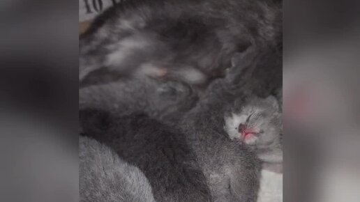 Котята нежатся рядом с мамой. Им всего четверо суток
