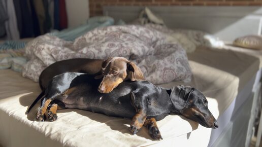 солнечные ванны двух маленьких такс🤣