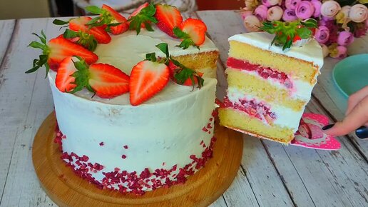 САМЫЙ ВКУСНЫЙ ТОРТ "КЛУБНИКА СО СЛИВКАМИ".ПРОСТО И ВКУСНО!