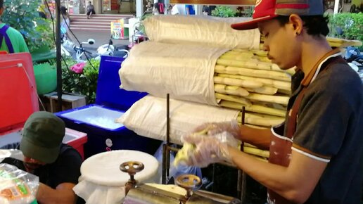 Сахарный тростник. Как делают сок из сахарного тростника. Тайланд. Пхукет.