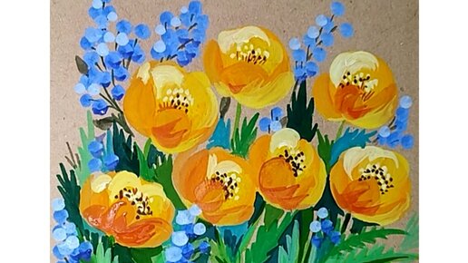 💙🌼💙Декоративное рисование цветов круглой кистью губкой, ватными палочками и кистью для каллиграфии.🌼💙🌼