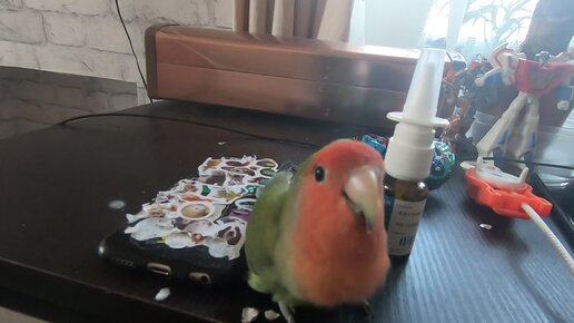Неразлучник ДЕВОЧКА закладывает бумажки в крылышки