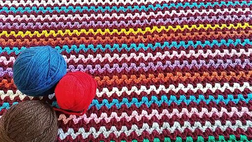 "Создаём шедевр из остатков пряжи крючком!" Мой удавшийся эксперимент: шикарный плед
