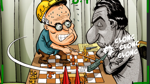 Тигран В. Петросян, играя черными в Москве против Михаила Ботвинника, показывает миру свой крутой вариант в отказанном ферзевом гамбите