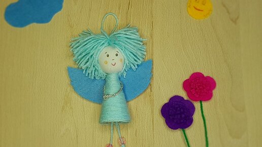 Озорной голубой ангелочек из картона и пряжи своими руками