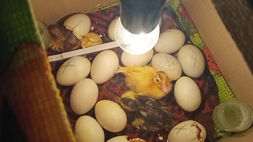35 день инкубации мускусных утят в картонной коробке. Вылупление утят. И сколько же их