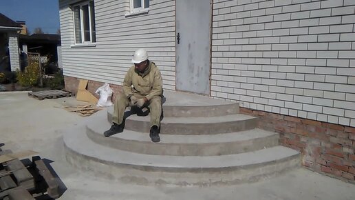 Круглое бетонное крыльцо с тремя ступенями
