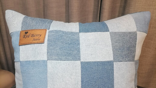 ЛОСКУТНАЯ НАВОЛОЧКА, ИЗ СТАРЫХ ДЖИНСОВЫХ БРЮК.