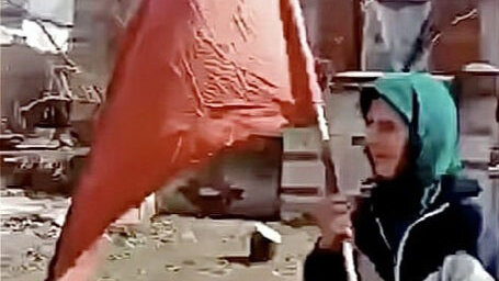 Бабушка с красным флагом
