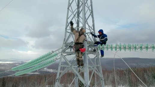 Подъем и закрепление натяжных гирлянд изоляторов на анкерно-угловой опоре У500н-1.С8