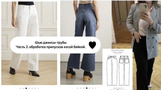 Шью джинсы-трубы как у Isabel Marant за 36000₽. Часть 2: обработка припусков бейкой. Собираем джинсы по шаговым, боковым швам и шву сидения