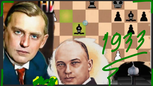Александр Алехин вел всю игру, эффектно сражаясь белыми против Савелия Тартаковера в Париже, 1933. Но в итоге пожали руки на ничью, 1/2-1/2