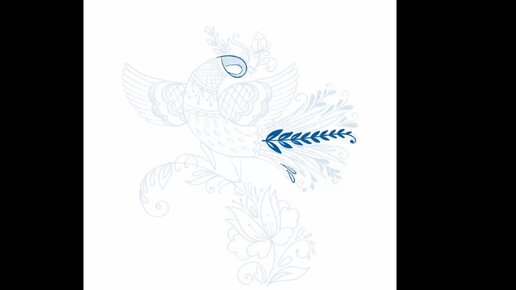 Таймлапс рисования синей птицы в стиле гжель. Векторная графика.