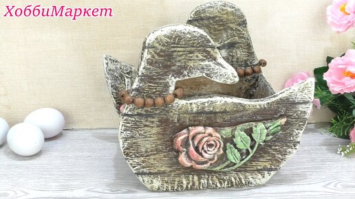 Картон превратился в старое дерево и полезную вещь. Короб Уточки. ХоббиМаркет