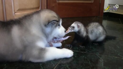БОИ БЕЗ ПРАВИЛ, голодный хорёк атакует маламута