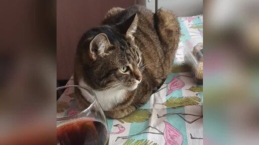 Обедаем вместе. Наглый кот.
